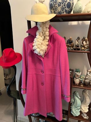 Prezioso ed elegante caban o capotto corto in lana e cashmere in ottimo stato. Per donna elegante. Indossato pochissimo e rimasto nell'armadio. È nuovissimo ed elegante. Qualità altissima. Comprato in outlet di maxmara, e come mi hanno detto realizzato in stessa azienda per altri . Io ho pagato tanto. Colore borgogna guardate le foto. Taglia italiana 52, eu 48, le misure dettagliate scritte, guardare l'etichetta. Misure Da ascella a ascella 60 cm Lunghezza 65 cm Spalla; 43cm Manica 60 cm La modella che indossa di taglia M-L, per lei è grande. In omaggio un paio di guanti nuovi in colore simile,in velluto morbidissimo!
