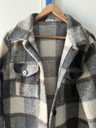 Giacca a quadri beige e bianca