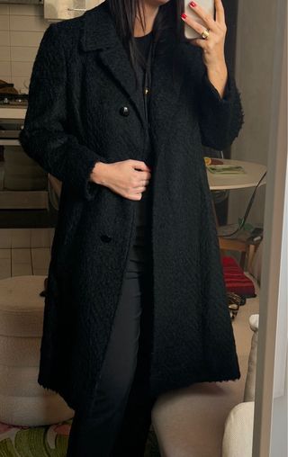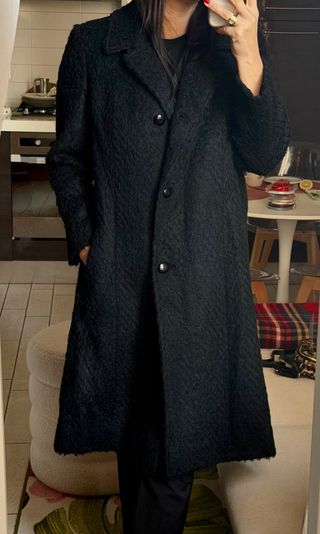 Cappotto lungo, veste bene come una M. Lunghezza cappotto dalle spalle 103 cm Lunghezza manica 60 cm Circonferenza torace 96 cm