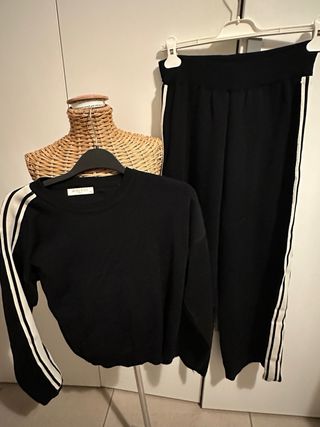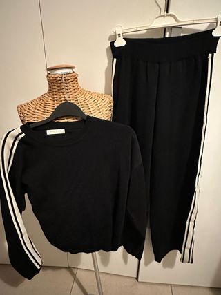 Completo composto da maglia e pantaloni. - Maglia girocollo con dettagli a contrasto sulle maniche. - Pantaloni con elastico in vita e banda laterale a contrasto.