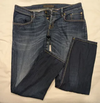 Pantaloni in denim da uomo. - Vestibilità comoda. - Dettagli con cuciture a contrasto.