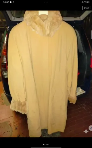 Elegante cappotto color beige, perfetto per le giornate più fredde. Il collo è rifinito con morbida pelliccia sintetica. Se sei in Italia scrivimi prima di acquistare! 46 Il cappotto non ha l'etichetta quindi quella indicata è solo perché l'app mi obbliga a mettere un brand - Collo in pelliccia sintetica. - Polsini con dettaglio in pelliccia. - Chiusura con bottoni nascosti. È stato per moltissimi anni in magazzino quindi possibilità di presenza di piccoli o medi difetti e necessità di lavaggio--> Ecco perché il prezzo