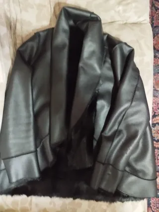 Elegante giacca Ecoshearling nera. - Design moderno e raffinato. - Materiale esterno effetto pelle. - Fodera interna in morbida pelliccia sintetica.