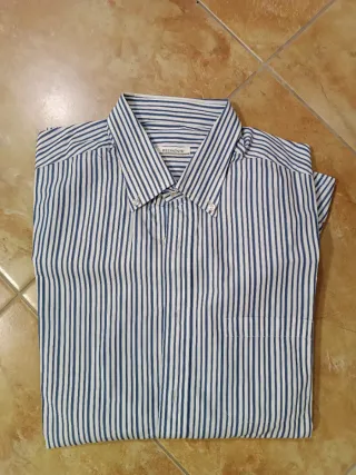 Camicia a righe in cotone. Misure prese piano sono spalle 50 cm ascella ascella 64 cm la lunghezza 83 cm - Fantasia a righe verticali. - Colletto con bottoni. - Taschino sul petto.