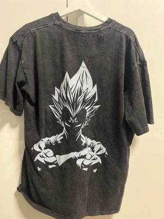 Maglietta a maniche corte con stampa sul retro di Vegeta da Dragon Ball. - Colore grigio effetto stone washed. - Taglia XXL, ma veste come una XL.