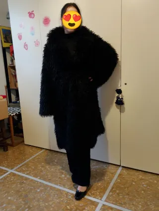 Nuova di zecca! Ecopelliccia Mongola troppo bella ed alla moda! Molto calda e leggerissima. Ha due tasche laterali. Chiusura con due ganci di pelliccie. Taglia unica ma grande. La modella che indossa di taglia M-L, per lei un po' grande. Direi che XL-XXL. Le misure precise sono: da ascella a ascella fa 58cm, la lunghezza dalla spalla 110cm. #ecopellicciadonnashic #pelicciamongolaallamoda