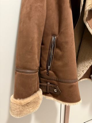Bellissimo bomber Stradivarius con fodera in pelo. - Chiusura zip frontale. - Dettagli in ecopelle. - Tasche con zip laterali. - Polsini e fondo con pelliccia sintetica.