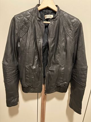 Giacca in vera pelle, un capo versatile e di stile. - Materiale: vera pelle - Dettagli trapuntati sulle spalle - Zip frontale - Tasche laterali - Polsini e fondo elasticizzati
