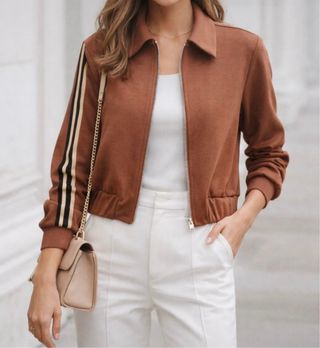 Giacca casual chic da donna, perfetta per un look alla moda. - Design con zip frontale. - Dettagli a contrasto sulle maniche. - Vestibilità comoda.