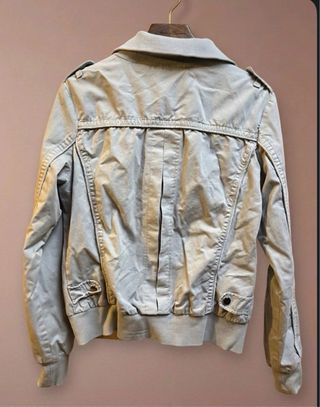 Giubbino donna Rifle jeans lillà taglia XL mezza stagione poliestere-cotone spalla-spalla 43, ascella-ascella 52, spalla-vita 54 peso 350 gr. 3 tasche 2 esterne 1 interna - Tasche frontali con bottoni a pressione. - Polsini e fondo elasticizzati.