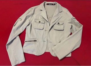 Giacca Sahariana Blu Deise – Stile Casual Chic Vendesi giacca sfoderata color sabbia in cotone leggero, marca Blu Deise. Il design versatile e grintoso è caratterizzato da: •Quattro tasche frontali (due a toppa sul petto con bottone e due inferiori con zip in metallo finte). •Taglio moderno: chiusura frontale a due asole (senza bottoni applicati, come si nota in foto mancanti). Perfetta per la mezza stagione, si abbina facilmente sia ai jeans che a un outfit più ricercato. •Taglia S/M.