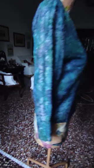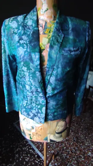 Elegante giacchino con una vivace fantasia floreale che mescola tonalità di blu e verde. - Design a rever. - Chiusura con un bottone. - Tasca sul petto. - Maniche lunghe.