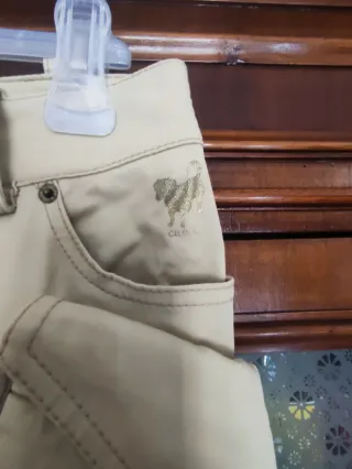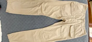Vendo bellissimo pantalone pinocchietto a 3/4 con risvolto, doppie tascone ampie con chiusura a bottone, color panna con cuciture beige in rilievo, tessuto elasticizzato e cotone. Ideali per la bella stagione, da abbinare con sneakers o con tacchi, ideali per il deserto (occasione in cui li ho usati), marca Celyn B., tg.42. lunghezza vita 40 cm, fianchi 50 cm, cavallo 30 cm, lunghezza totale 65 cm.