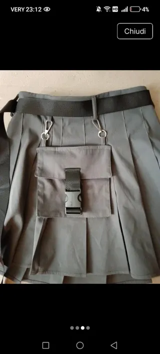Gonna plissettata grigia con tasca