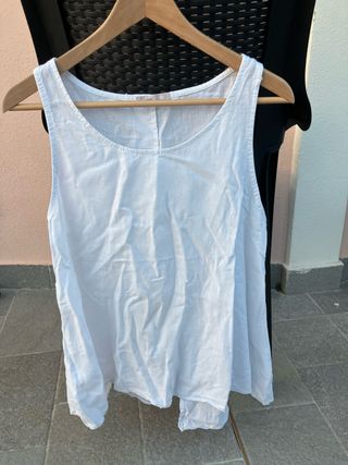 Canotta da donna in lino e viscosa - Scollo rotondo. - Senza maniche. - Orlo asimmetrico. 65x30x50