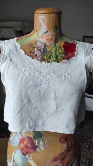 Top in cotone con dettagli ricamati e finiture a smerlo. - Ricamo floreale sul davanti. - Monogramma R e N ricamati. - Finiture a smerlo sul collo e sulle maniche.