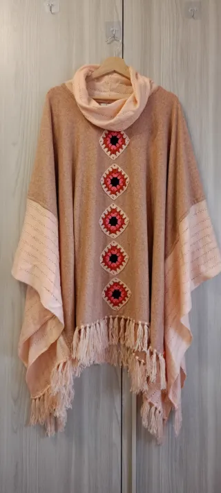 Poncho Patricia Mora Boho Chic Beige/Rosa