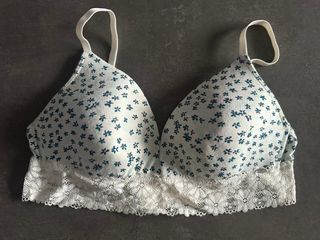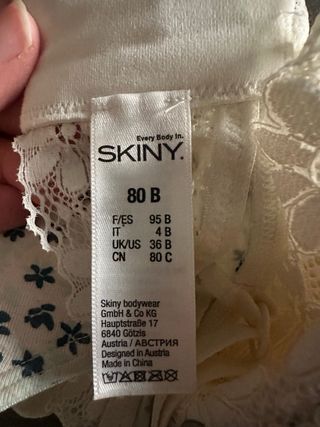 Reggiseno Skiny con fantasia floreale su sfondo bianco e pizzo bianco sul bordo inferiore. 4B -80B