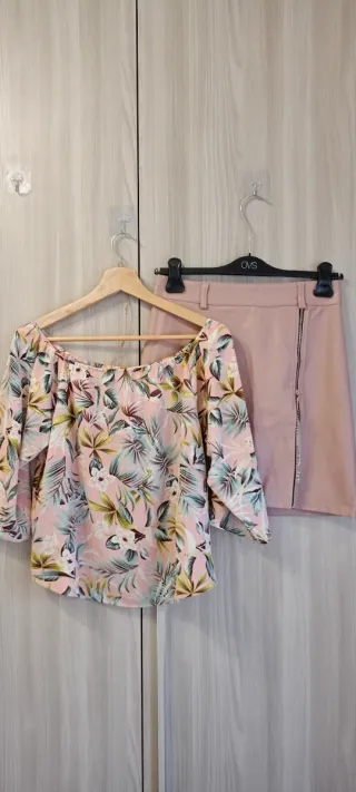 Coordinato Blusa Tropical & Gonna Ecopelle