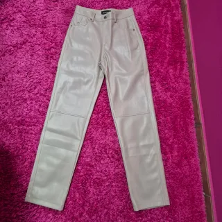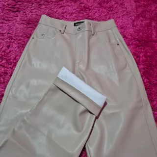 Pantaloni similpelle lucidi beige