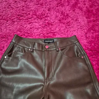 Pantaloni marroni similpelle lucidi