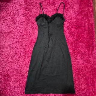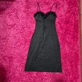 Elegante vestitino vintage con dettagli in pizzo. - Taglia IT 44 - EU 36 - Spalline sottili - Scollo a cuore con laccetto - Orlo con balza in pizzo