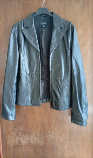 Elegante giacca in pelle nera, perfetta per completare ogni outfit. - Design moderno e versatile. - Chiusura frontale con zip. - Tasche applicate sul davanti.
