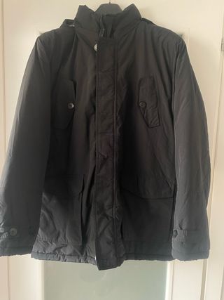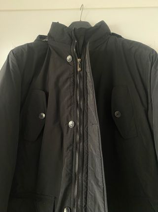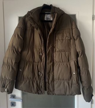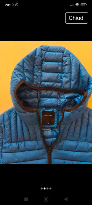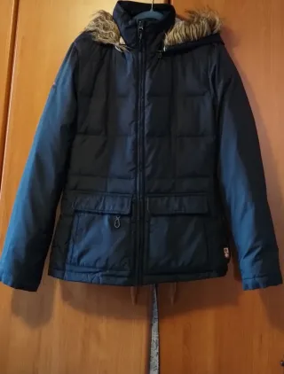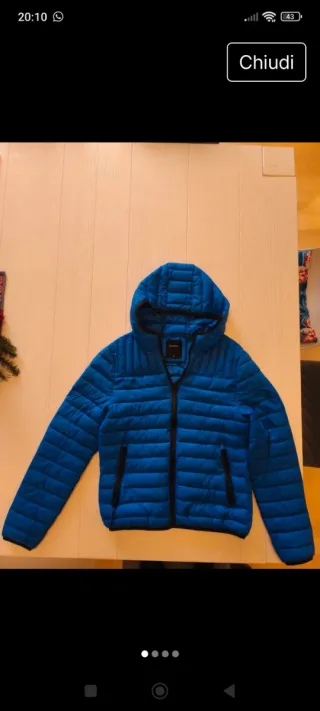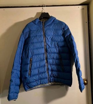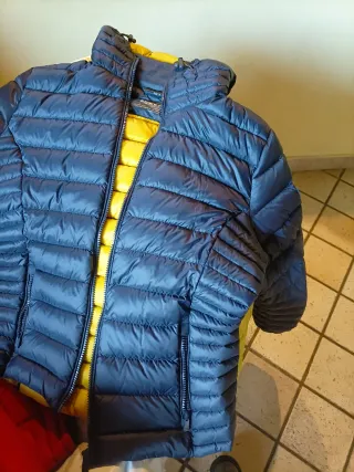 Giubbotto imbottito con cappuccio. Vendo per inutilizzo,unici 2 difetti ( visibili anche da foto) scolorimento zip e piccolo buco prontamente da sigaretta prontamente coperto. Per il resto il giubbotto è in ottime condizioni. Prezzo trattabile,per info contattatemi.