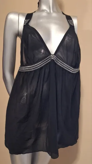 Elegante baby doll nero con dettagli decorativi. - Tessuto leggero e trasparente. - Fascia decorata sotto il seno. #spedizioneveloce #nero #sexy