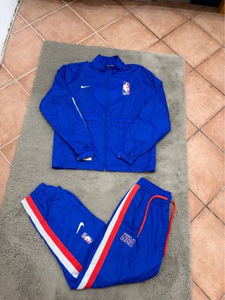 Completo sportivo composto da giacca e pantaloni. Tuta praticamente nuova (peccato per piccola parte elencata gia nelle foto un po rotta sul segno nike e nba ) Pee il resto nuova - Giacca con zip frontale e logo NBA. - Pantaloni con banda laterale rossa e bianca. - Logo Nike presente su entrambi i capi.