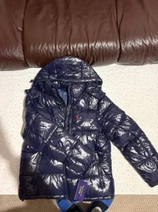 Piumino Ralph Lauren lucido e imbottito, perfetto per le giornate più fredde. - Cappuccio integrato. - Chiusura con zip frontale. - Tasche laterali con zip. - Logo Ralph Lauren sul petto.
