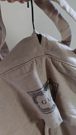 Porta abiti del marchio Gucci in colore beige. Ideale per trasportare i vestiti in modo sicuro ed elegante. Design classico e funzionale. Materiale di alta qualità.