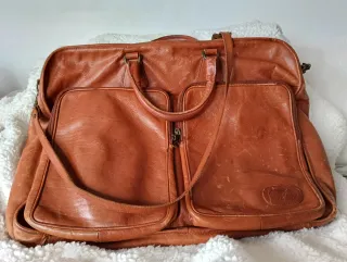 Elegante porta abiti in pelle marrone del marchio P.G.P, realizzato in vera pelle italiana di alta qualità e con eccellente finitura. Usato ma molto ben conservato. L'interno dispone di due appendiabiti rigidi di alta qualità, solidi ed eleganti, ideali per mantenere abiti o capi delicati perfettamente protetti durante il trasporto. L'esterno ha tre scomparti, due nella parte anteriore e uno nella parte posteriore, molto pratici, che permettono di riporre un cambio extra, camicie o accessori, rendendo il porta abiti particolarmente funzionale per viaggi o uso professionale.