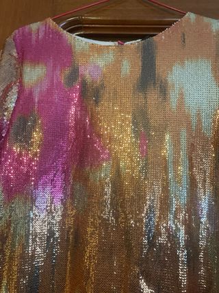 Set di due abiti da festa, ideali per qualsiasi celebrazione. - Abito con paillettes in toni dorati e rosati. È più economico perché si restringe sotto la parte anteriore, ma indossato quasi non si nota. - Abito con paillettes argentate e drappeggiato. Qualsiasi mio abito può essere provato senza impegno. Dorato a 10€ e argentato a 15€. Ma entrambi a 20€.