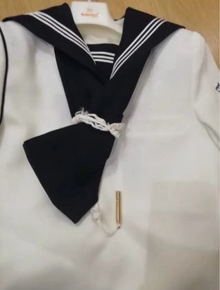 Vendo due abiti da marinaio uguali, in perfette condizioni, tranne il cordoncino di uno di essi, che è leggermente sfilacciato, come si vede nella foto, quindi è un po' più economico. 30 per uno e 25 per l'altro
