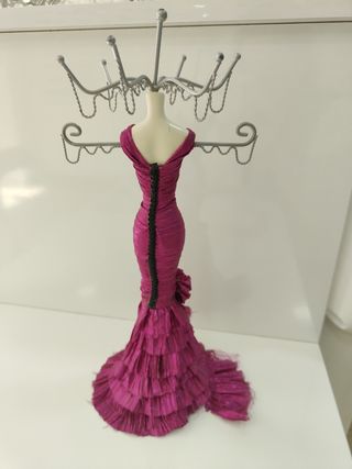 Elegante portagioie a forma di abito - Design dell'abito da ballo - Finitura lucida - Base in argento.