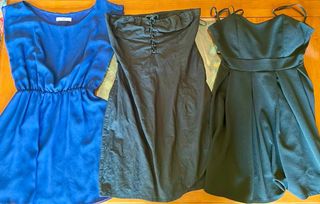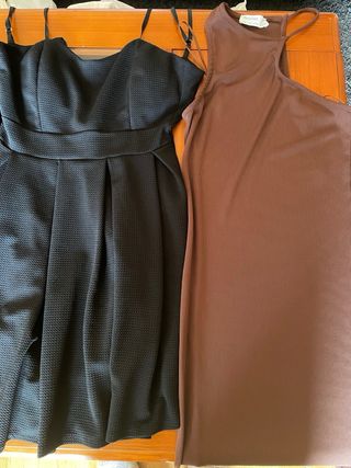 Set di cinque abiti, ideali per eventi speciali come feste o lauree. Prezzo del set 15€ prezzo unitario 4€ - Abito blu con elastico in vita. - Abito nero senza spalline con lacci. - Abito nero con spalline e trama. - Pantaloni aperti sulla schiena -Abito in cotone Word of Honor