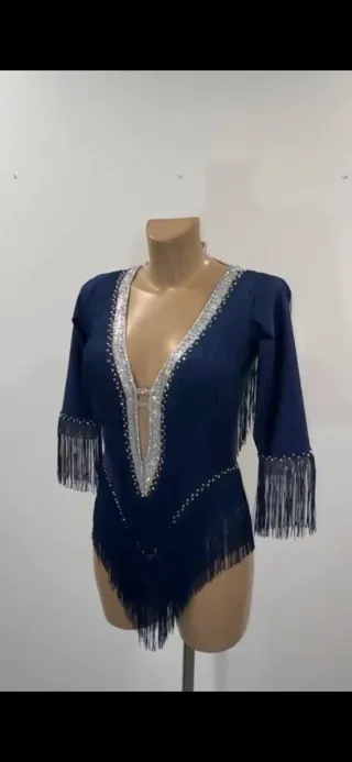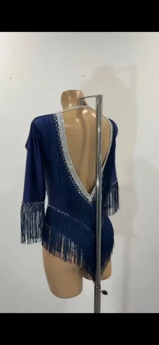 Bellissimo pezzo per ballo sportivo-latino. Ideale per competizioni o prove. - Design con frange. - Adornato con strass. - Scollo pronunciato. - Taglia altezza 165-170 cm
