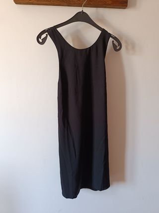 Elegante abito nero di Zara Basic, ideale per eventi o cocktail. - Design senza maniche. - Dettaglio con risvolto sulla spalla. - Taglio asimmetrico sulla gonna.