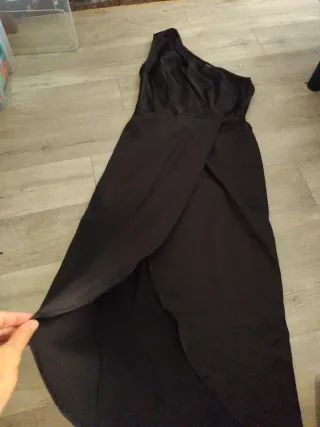 Elegante abito nero dal design asimmetrico, ideale per eventi speciali. - Taglio asimmetrico. - Design in stile cocktail.