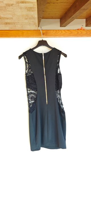 Bellissimo abito da cocktail, ideale per un'occasione speciale. È di colore nero e ha un design elegante. - È un abito tubolare. - Ha un dettaglio floreale sul petto. - Il tessuto sembra di buona qualità. È nuovo, ha delle casseruole sul petto, quindi non devi indossare un reggiseno. Y l'intero vestito È elastico, con una cerniera sul retro.
