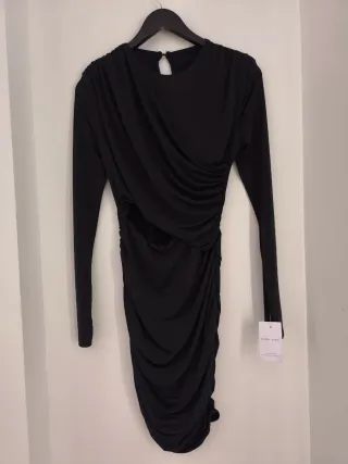 Prezzo originale 30€. Questo vestito nero taglia S è perfetto per serate speciali, eventi, feste o cene in cui vuoi sentirti sicura, stilizzata e molto sexy. ✔️ Taglio asimmetrico con dettaglio cut-out laterale che stuzzica la vita. ✔️ Drappeggio favorevole su tutto il corpo: modella e mette in risalto la figura. ✔️ Tessuto elastico e comodo che si adatta perfettamente. ✔️ Aderente ma elegante, con maniche lunghe e lunghezza mini. ✔️ Perfetto con tacchi o stivaletti. Ideale per: notte, festa, eventi, cocktail, fine anno, compleanni, uscire a ballare o qualsiasi occasione in cui vuoi risaltare.