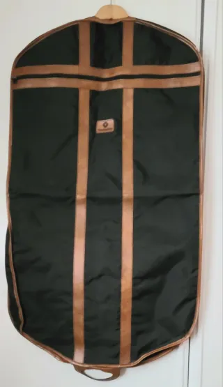 Porta abiti Samsonite nero in nylon 800, ad alta resistenza con dettagli in pelle marrone. Dimensioni 100x55 cm altezzaxlarghezza, chiusura con cerniera, tasca esterna grande capacità 33x55 cm altezzaxlarghezza, maniglia per facilitare il trasporto. In perfette condizioni, come nuovo, usato solo una volta per l'abito da sposa. In regalo gemelli con pompon o nodo, cordino intrecciato, in cotone color rosso e blu navy quasi nero, nuovi, mai usati.