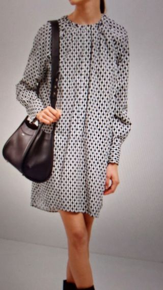 Bellissimo abito in cotone, a maniche lunghe, con stampa geometrica bianca e nera. - Modello corto e svasato. - Chiusura con bottoni invisibili. - Tessuto leggero e fresco. Senza cartellino ma evidente etichetta identificativa Max Mara e logo sul capo stesso. Taglia 44 italiana, ottima vestibilità