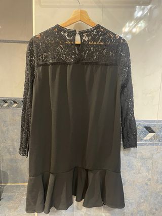 Vestito elegante di Zara con dettagli in pizzo. Maniche lunghe in pizzo. Corpo del vestito liscio. Fondo con volant.