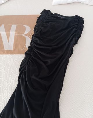 Vestito nero con ruches di Zara. Taglia XS. L'etichetta di cartone è caduta.