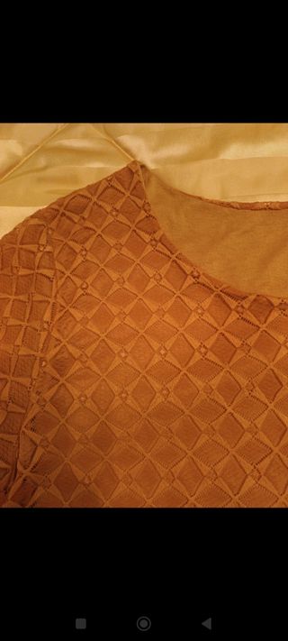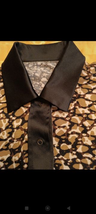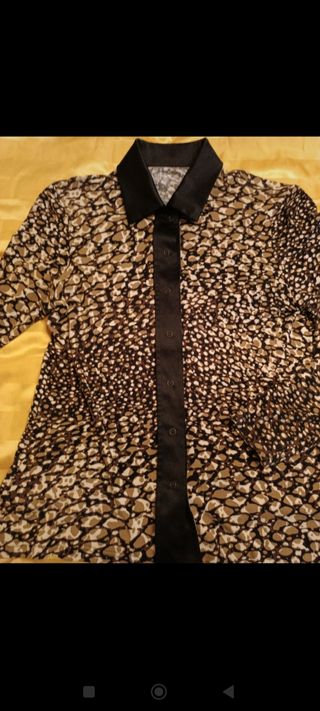 Blusa elegante con tessuto trasparente leggermente elasticizzato. Le maniche sono trasparenti mentre la parte del tronco è rivestita in maglina. La misura non è riportata ma veste una XXL. Se vuoi puoi chiedere le misure
