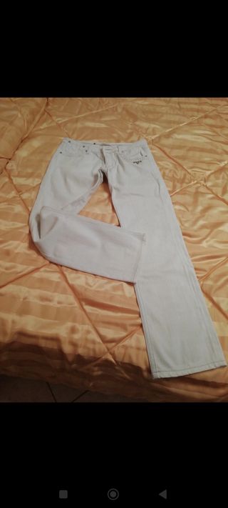 jeans larghi a zampa, tessuto tipo jeans, cuciture in argento e decorazioni nelle tasche posteriori