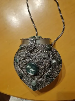 Borsa Cofre Vintage con Pietre Verdi e Argento