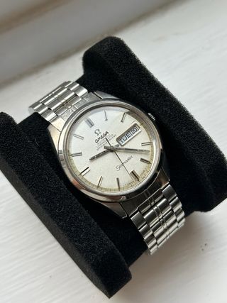 Orologio Omega Seamaster vintage funzionante perfettamente, in ottime condizioni come mostrato nelle foto. 100% autentico, movimento automatico, certificato Chronometer, indicatore di giorno e data.